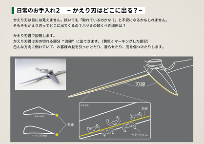 かえり刃が刃のどこに出るのか、日々のお手入れの重要性などを短くまとめた内容となっています。