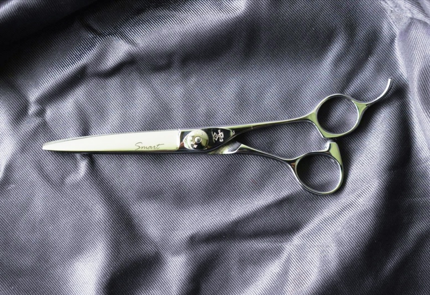 The moving blade shape is bamboo leaf shape and the other blade is willow leaf shape. The greatest secret is the blade edge. The bottom one third of the blade is blunt for hair to slide on purpose. The top two thirds is sharp to cut hair without letting hair off the blade. Like these features, "Smart" is suitable for slide cut technique and design the direction of the tip of the hair and also adjusting the texture.