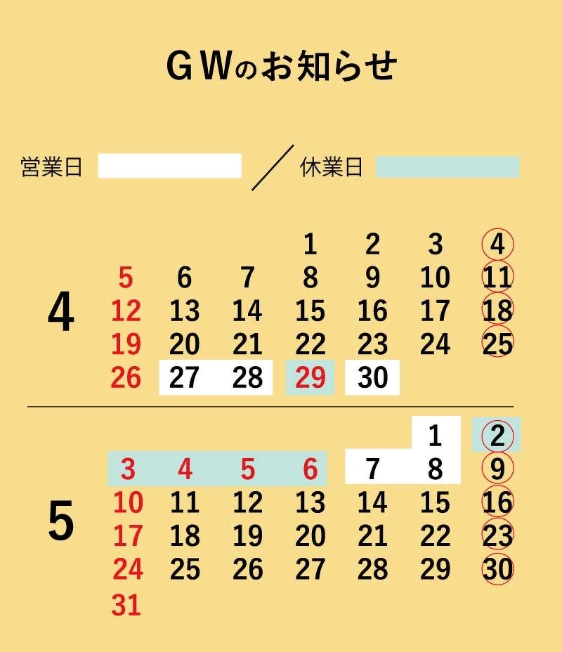 営業日に関するお知らせ