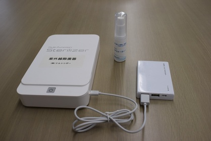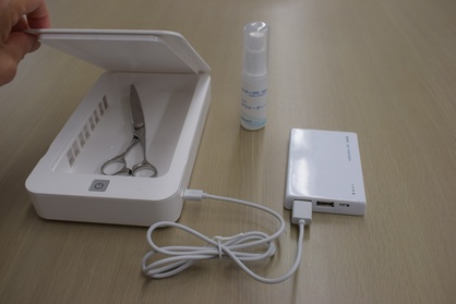 ・「携帯UV除菌器」を活用し、ハサミやその他持ち物を除菌しております。