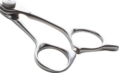 細かい部分のインナーセニングをやり易いように細く絞った刃形状と、メガネタイプで大きく自由に鋏の角度を変えられる指穴が特徴のミドルサイズシザーズ。