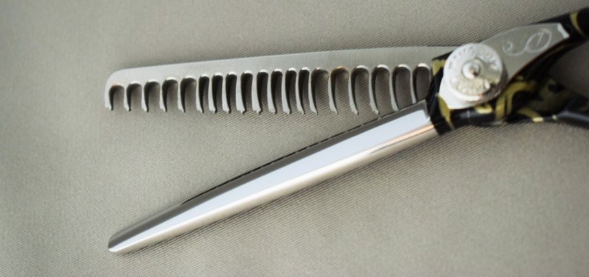 4種類の櫛の形状が組み合わり、よりセニングラインを残さず、質感の調整にもってこいのシザーズです。