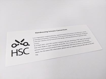 この度ジャパンブランドの品質管理のために、HSCで承認された、国内外に発送されるシザーズにはHSCタグがつけられます。