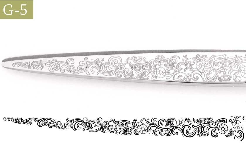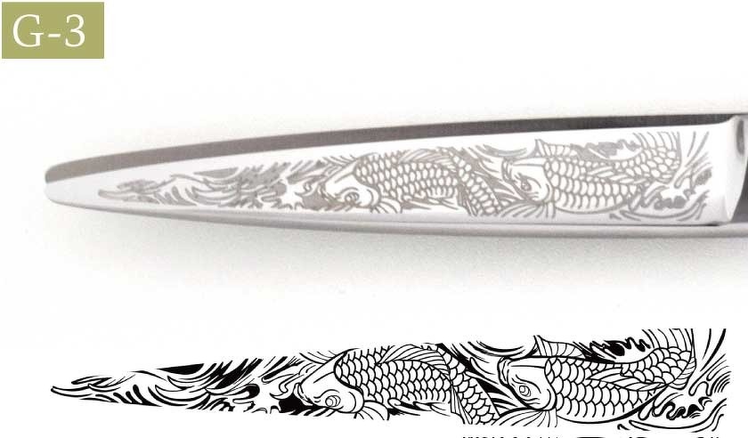 ・刃の形状、長さ、刃幅に合わせて図案を調整いたします。イメージ画像そのままの仕上がりにはなりません