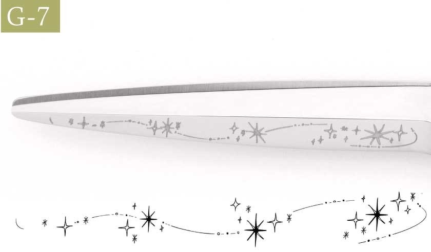 短い刃、細い刃幅のハサミには、適したレイアウトにする都合上、図案を変更する場合があります